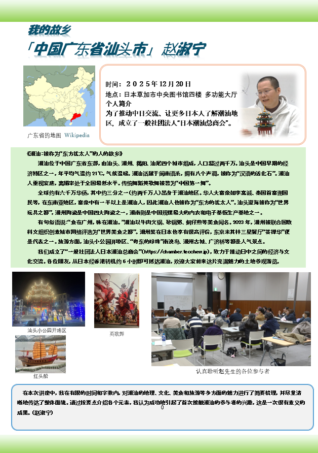 2025年12月20日国际讲座(日本举行)《潮汕:被称为“东方犹太人”的人的故乡》
